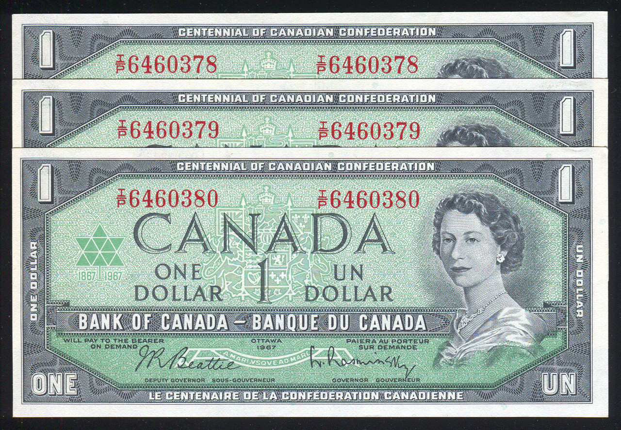 Canada - 1 Dollar - Beattie/Rasminsky - I/P 6460378-80 - 3 Consec - BC-45b-i - aUnc