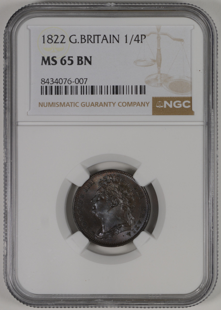 - Great Britain - 1822 - 1/4 Penny - Farthing - NGC MS65 BN