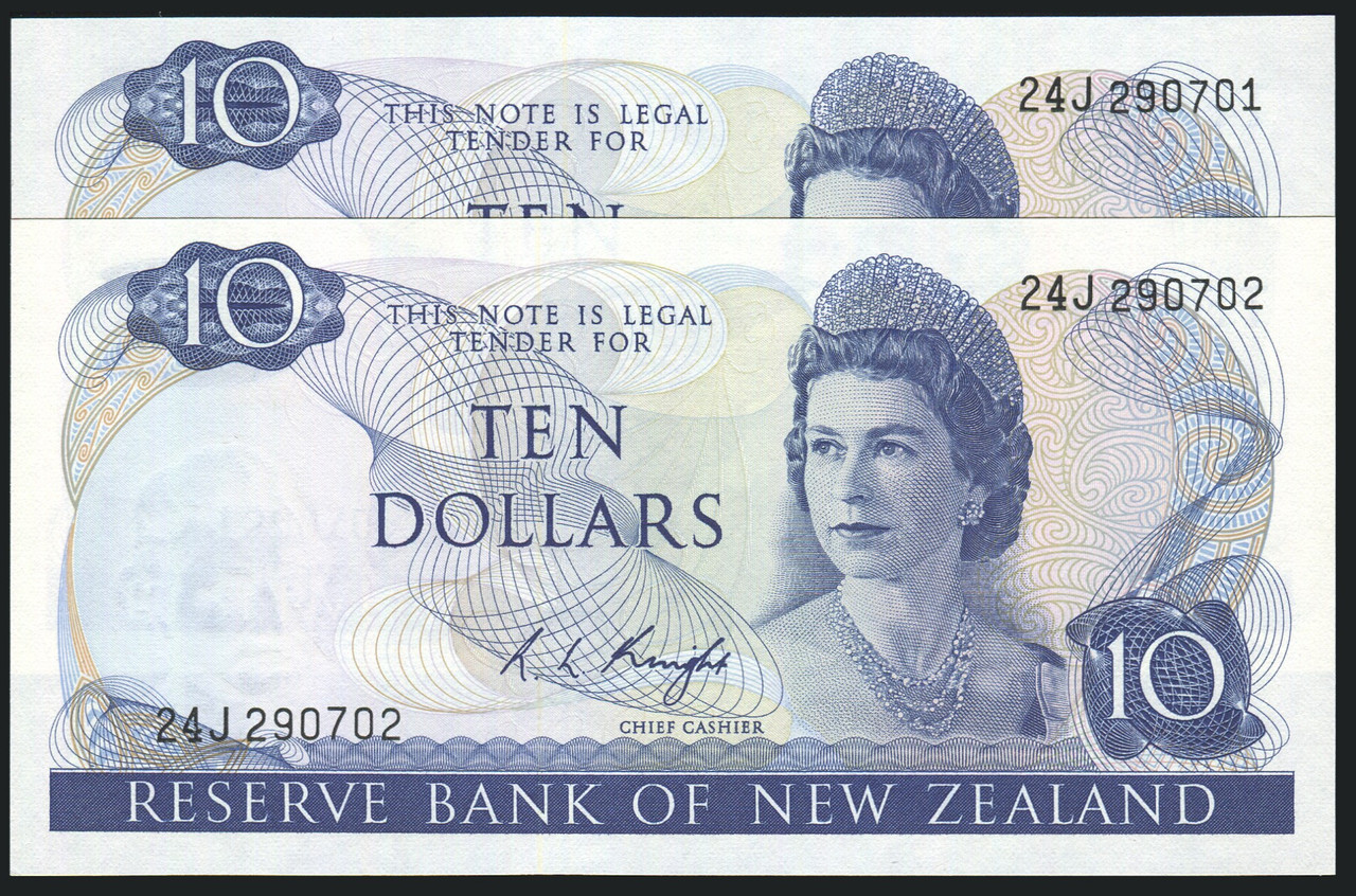 New Zealand - $10 - Knight - 24J 290701-702 - Consecutive Pair - Unc