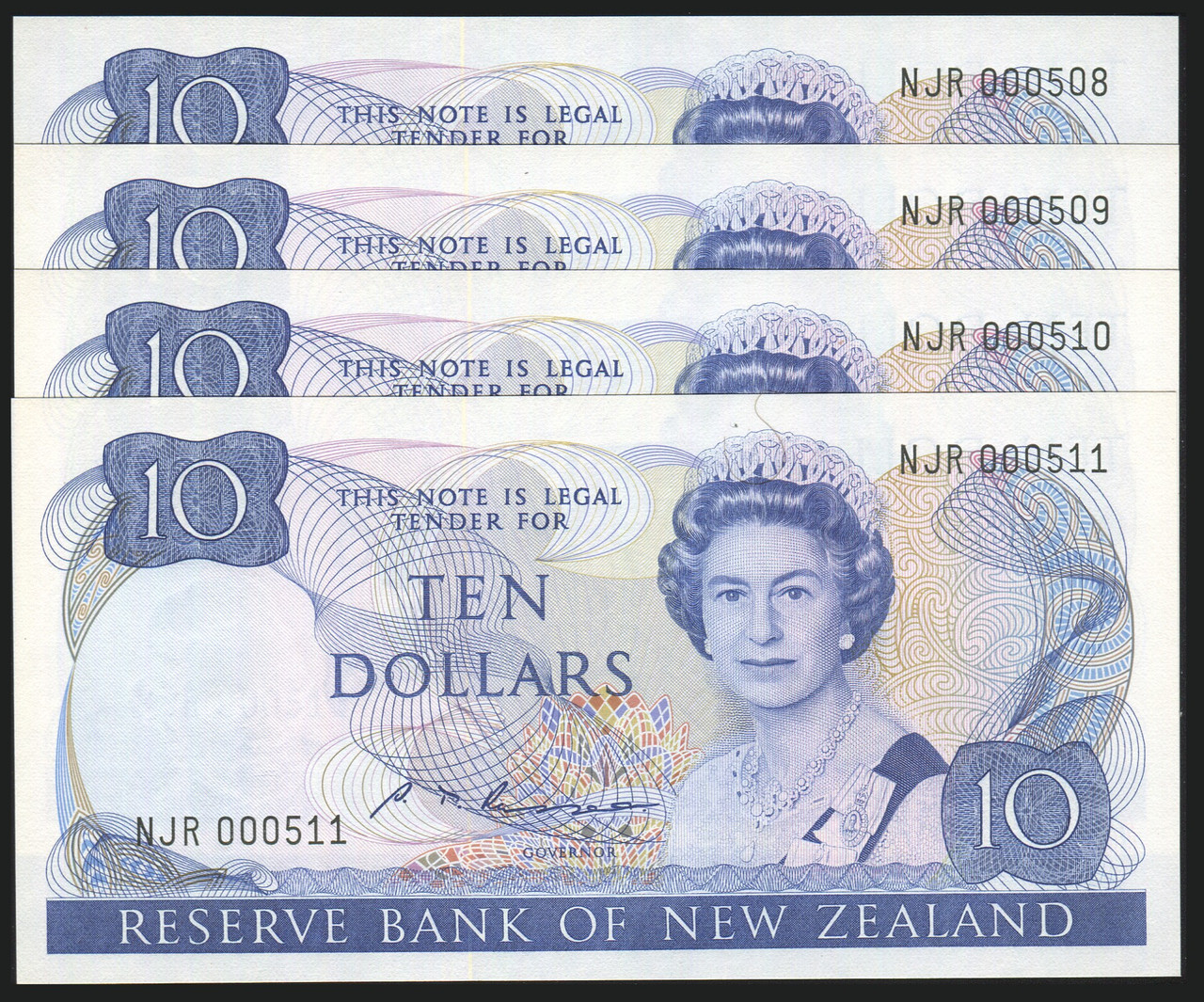 - New Zealand - $10 - Russell - NJR000508-511 - First Prefix - 4 Consecutive - Unc