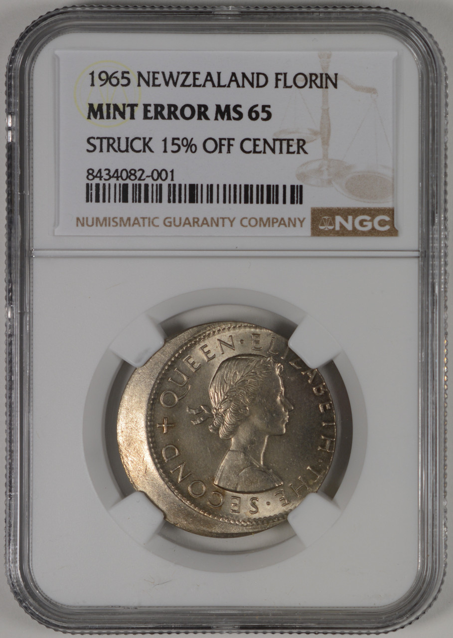 - New Zealand - 1965 - Florin - Broad Struck Error - KM28 - NGC MS65