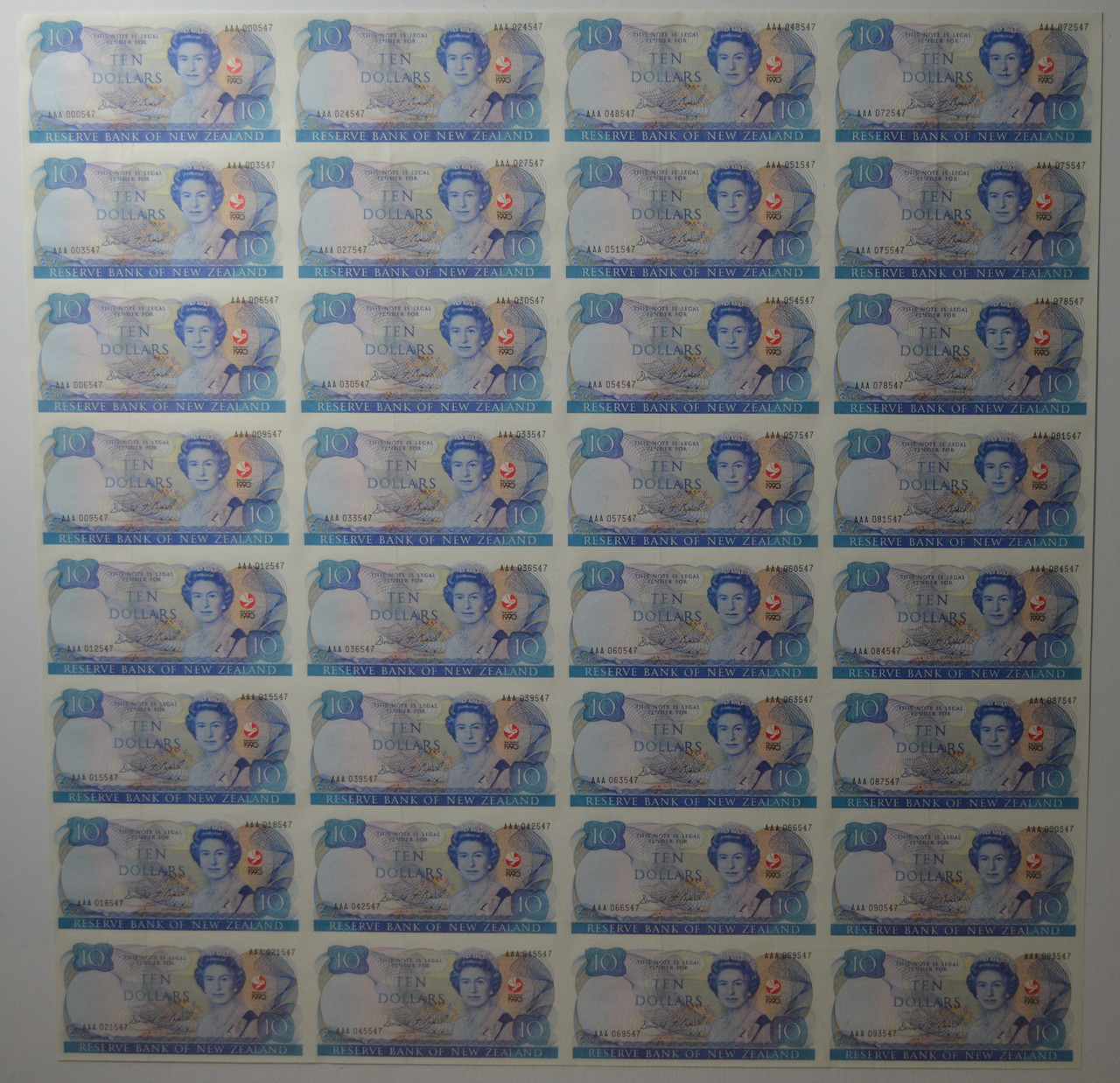 $10 1990 Commemorative Notes Roll Of 32 | 32 | 16 | 4 | 2