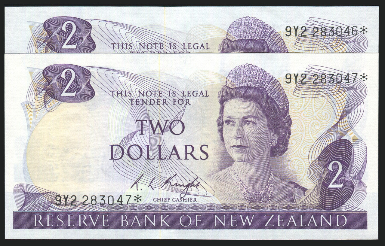 New Zealand - $2 - Knight - Y92 283046*-47* Consecutive Pair - Star Note - Unc