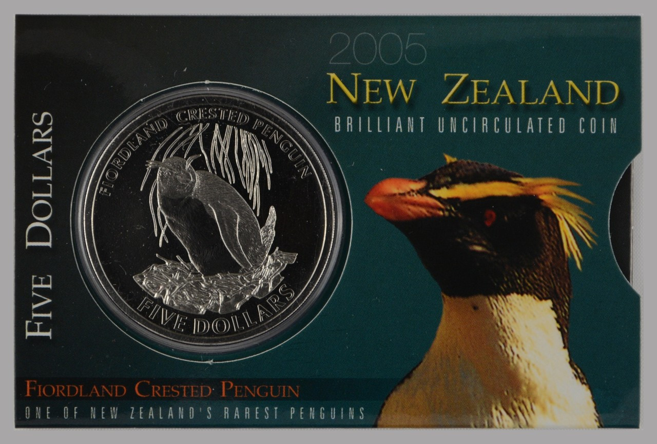 New Zealand - 2005 - $5 Uncirculated Coin - Fiordland Penguin