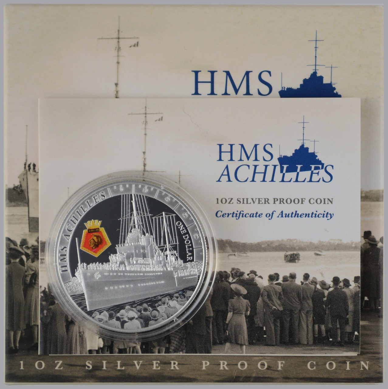 2014 New Zealand $1 Silver Proof Coin - HMS Achilles