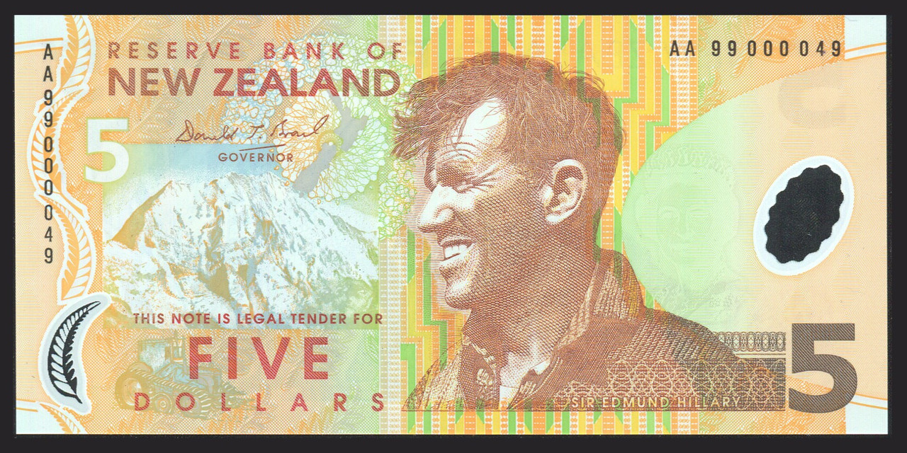 New Zealand - 5 Dollars - Brash - AA99 000049 - First Prefix - Low Serial - Unc